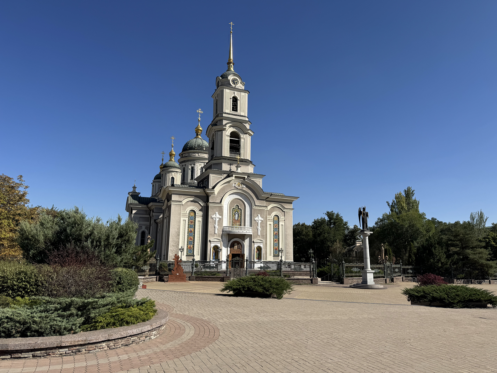 В 1883 году по типовому проекту Константина Тона на народные пожертвования в Юзовке был поздвигнут каменный храм, в 1890-х он обрёл законченный вид с колокольней, приделами и трапезной, надстроенными четырьмя куполами. Его колокольня стала высочайшим на тот момент зданием будущего Донецка. В 1931 году храм взорван советскими властями под предлогом получения строительных материалов. Восстановлен с изменениями в 1997–2006, перед входом поставлен подаренный Киевом в 2002 году памятник Архистратига Михаила. Храм является одним из символов Донецка и ДНР наравне с мемориалом Саур-Могилы.