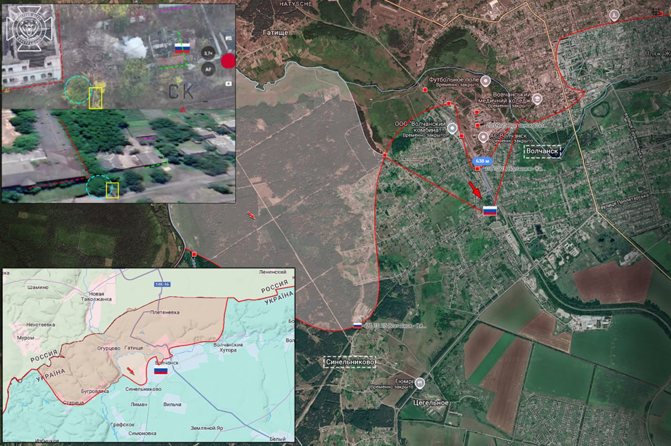 23.10.25 Волчанск - Кисляковка Активные боевые действия в Харьковской зоне безопасности. Атака ВС РФ пехотным подразделением в Волчанске. Штурмовая группа зачищает позиции ВСУ в жилой застройке микрорайона Кисляковка. Продвижение ВС РФ более 600 метров по территории города вдоль железной дороги. https://t.me/warriorofnorth/12757