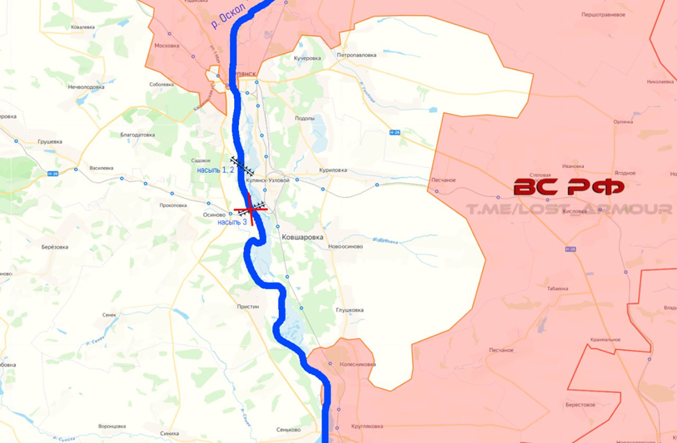 На Купянском направлении группировка ВСУ на левом берегу Оскола также "висит" на нескольких переправах в районе Купянска-Узлового, одна из которых сегодня была разрушена высокоточным ударом ВС РФ. https://t.me/lost_armour/6855