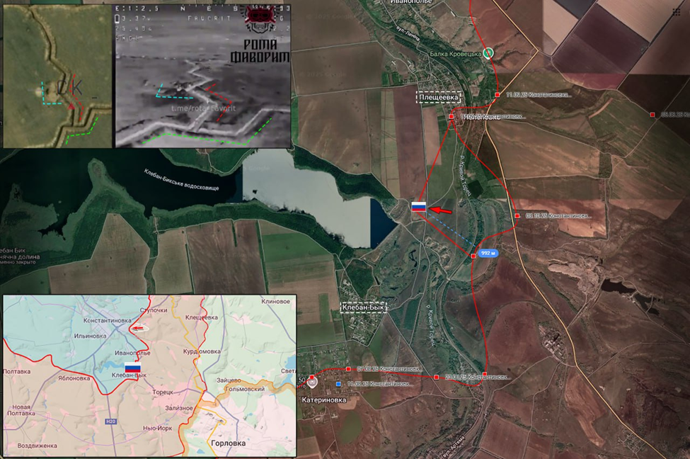 23.10.25 Горловка - Клебан-Бык Активные боевые действия в районе Горловки. Атака ВС РФ пехотным подразделением около населённого пункта Клебан-Бык. Военнослужащие ВС РФ занимают новые позиции в крупном опорном пункте по восточному краю Клебан-Быкского водохранилища под огнём ВСУ. Продвижение ВС РФ около 1 км.