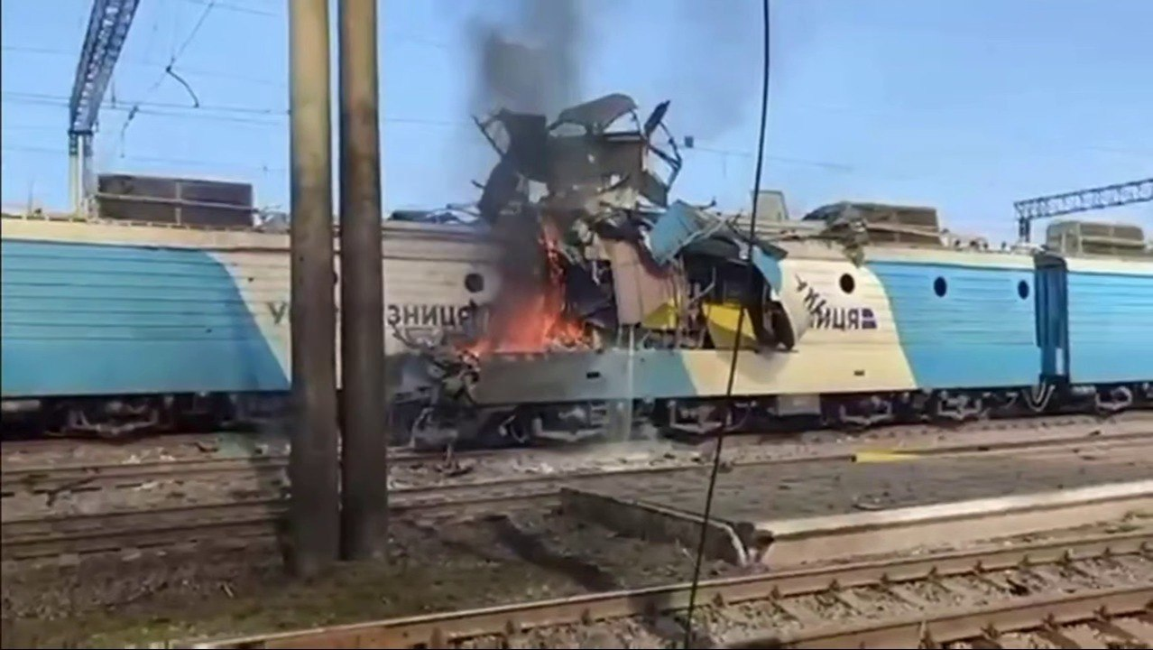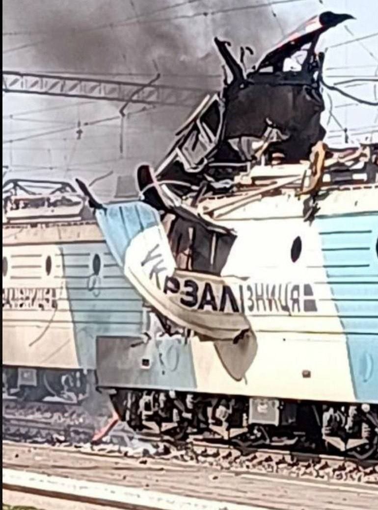 Последствия удара БПЛА по локомотиву ВЛ1М5-093А на ЖД станции 'Кривой Рог-Главный'