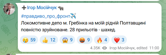 Поражено локомотивное ДЕПО нп Гребенка Полтавской обл