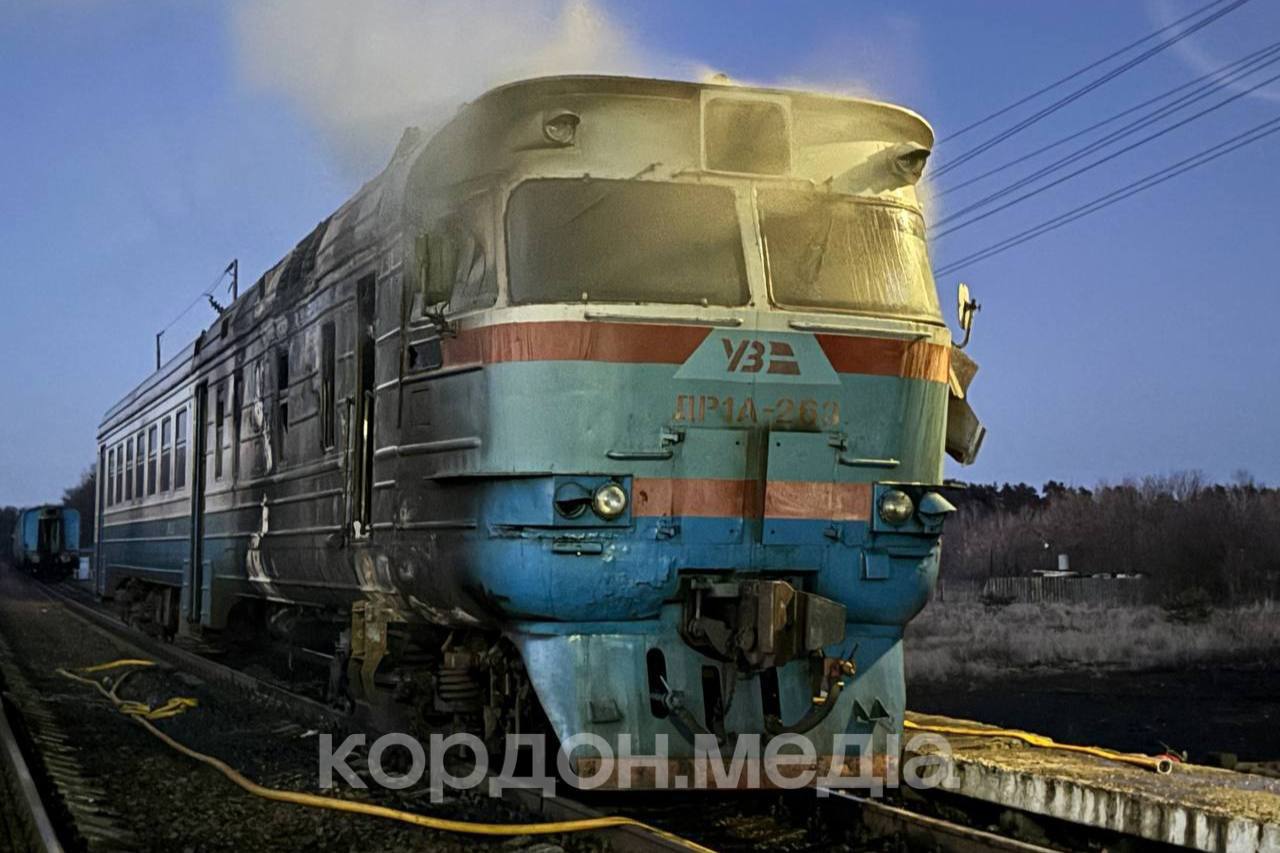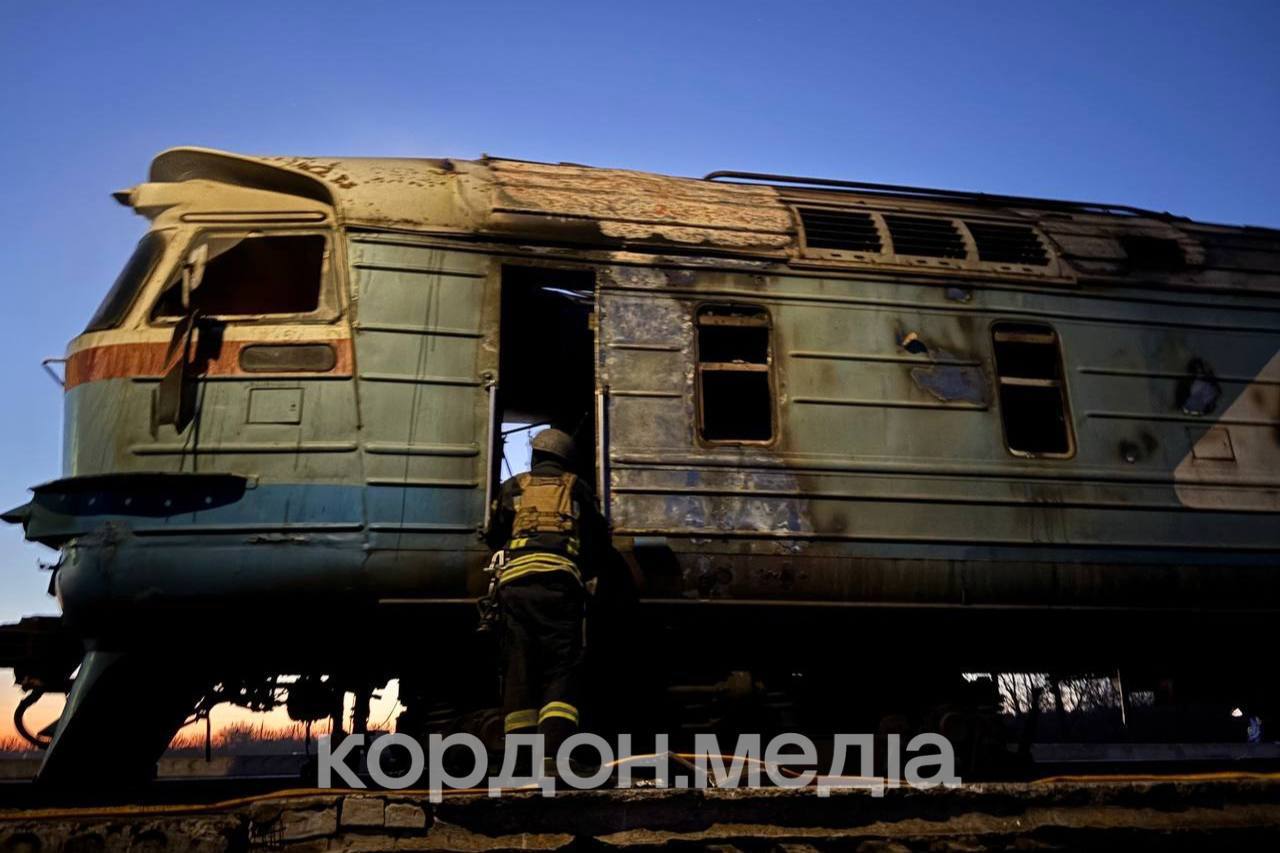 Последствия удара БПЛА-камикадзе по дизель-поезду ДР1А в н.п. Новоселица Сумской области