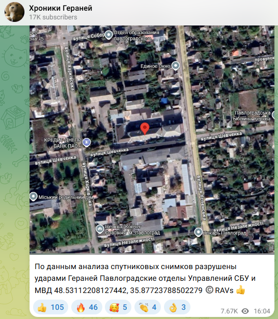 ID: 56037 | Автор: RAVs | Дата: 2025-11-26 | Просмотров: 330 | Теги: Поражение объектов, ППД, _Павлоград, без_видео, Герань