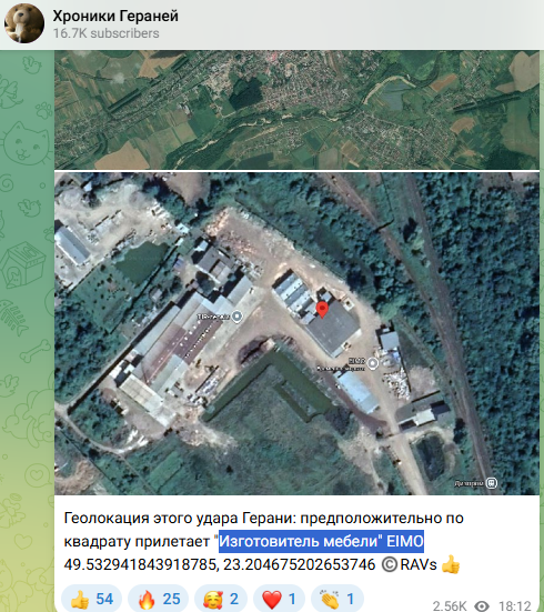 ID: 55088 | Автор: RAVs | Дата: 2025-11-19 | Просмотров: 461 | Теги: Поражение объектов, производство, _Львовобл, Самбор