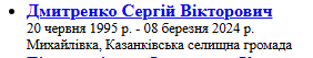 https://t.me/mod_russia/36445 Виталий родился в городе Днепре. Служил в 138-й Днепровской зенитной ракетной бригаде ПВО Воздушных Сил ВСУ. Занимал должность оператора ЗРК С-300. Воевал также в разведке ПВО. Воин отмечен рядом наград, в частности: «Хрустальный Patriot» (за успехи в учебе на базе НАТО в Германии), «Ветеран войны», медаль За оборону Киева («За отвагу»); «Комбатантский крест» и орден «За мужество» III степени (посмертно). Мог работать почти на всех средствах ПВО. Как лучшего и способного, его направили на учения на базе НАТО в Германию. После обучения был направлен на оборону Киева и области. Но выполнял боевые задачи по всей Украине. Виталий первый из операторов ЗРК "Patriot «вместе со своим экипажем сбил российскую ракету»Кинжал". А дальше была работа по сбитию вражеских ракет и самолетов, которые несли на себе смертоносные кабы. В день женского праздника, 8 марта 2024 года, пришло известие о том, что при выполнении боевого задания он уничтожен,всего было уничтожено 9 членов экипажа. будучи срочником, подписал контракт и присоединился к рядам 138-й зенитной ракетной бригады на должность командира установки стартового взвода стартовой батареи 8-го зенитно-ракетного дивизиона. Он понял, что хочет развиваться в этом деле, поэтому проходил обучение в Германии и Испании по стандартам НАТО по инженерному составу систем ПВО. Также учился по программе базового уровня сержантского состава. 21 ноября 2023 года получил звание младшего сержанта.