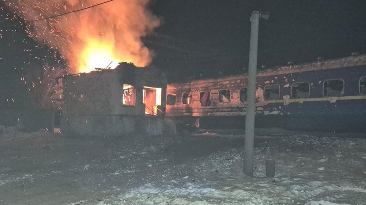 Последствия удара БПЛА 'Герань' по железнодорожной станции 'Терещенская' в н.п. Воронеж Сумской области