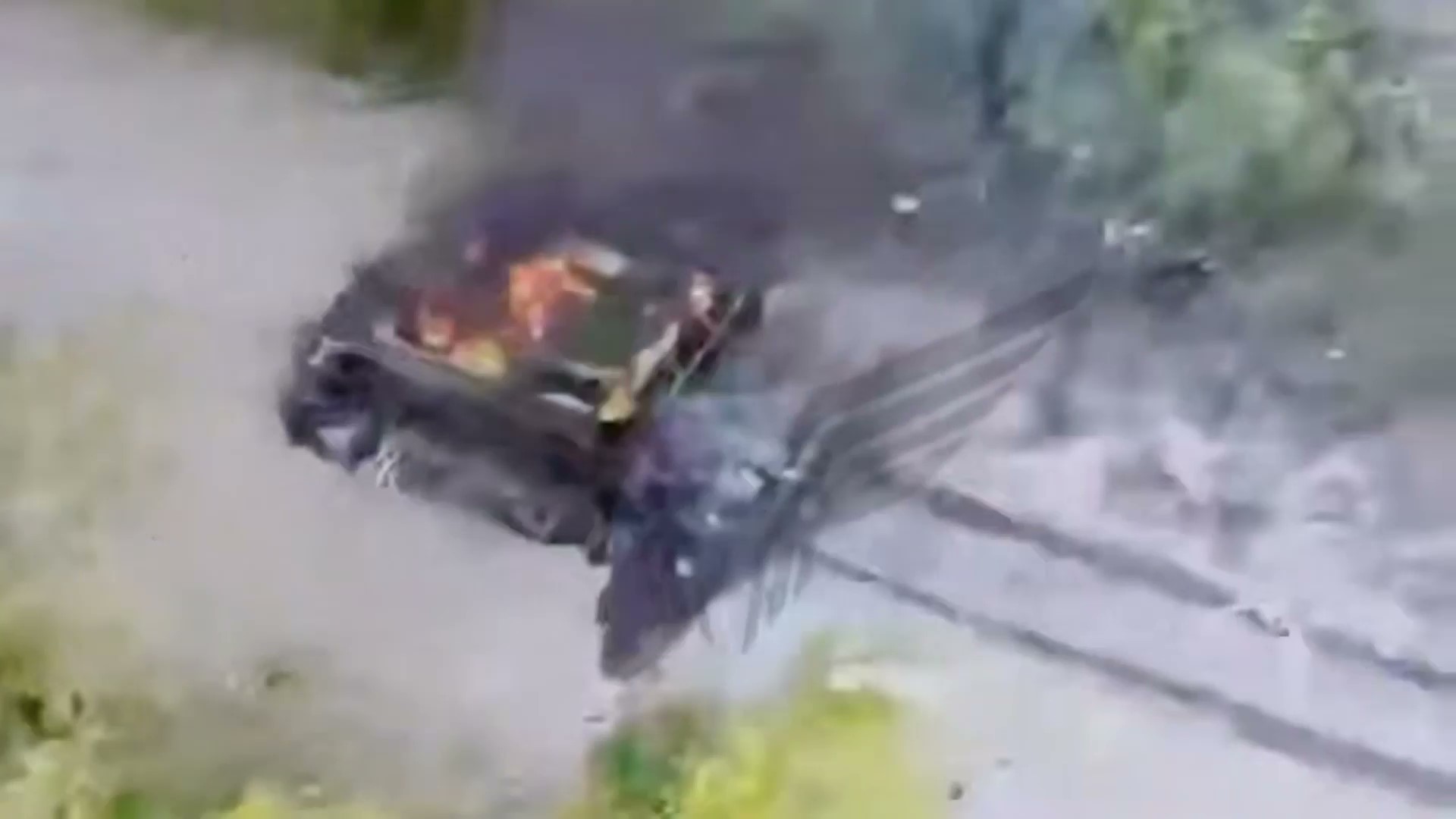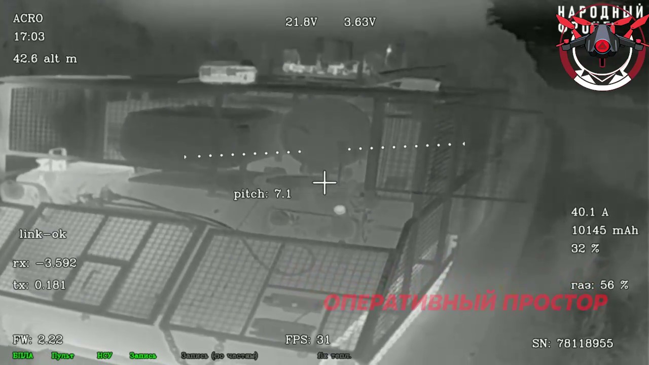 Эпичное видео с камер БПЛА-камикадзе "Герань" во время ударов по ЖД составу с имуществом ВСУ и емкостям с ГСМ в районе н.п. Бобровица Черниговской области. https://t.me/lost_armour/6605