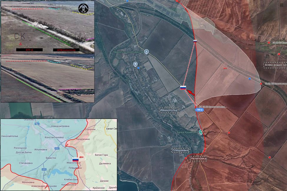 31.10.25 Константиновка - Иванополье Активные боевые действия в районе Горловки. Механизированная атака ВС РФ в окрестностях Иванополья. Штурмовая техника под обстрелом ВСУ на трассе к Константиновке. ВС РФ увеличили зону контроля восточнее Иванополья до 800 метров.