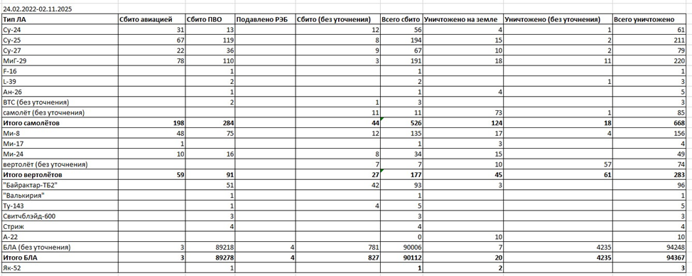 Потери ВВС ВСУ по брифингам МО РФ. Еженедельное обновление.