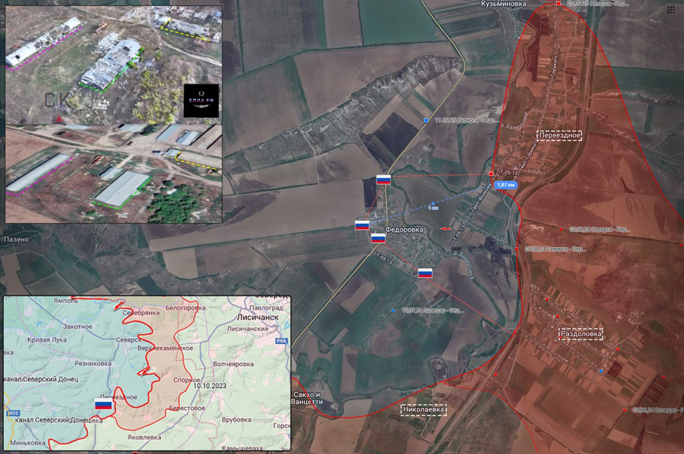 04.10.25 Северск – Фёдоровка. Последствия боевых действий в районе Северска. ВС РФ взяли под контроль населённый пункт Федоровка и подняли флаги Российской Федерации на его территории. Продвижение ВС РФ до 2 км на южном охвате Северска. https://t.me/operators85RB/296
