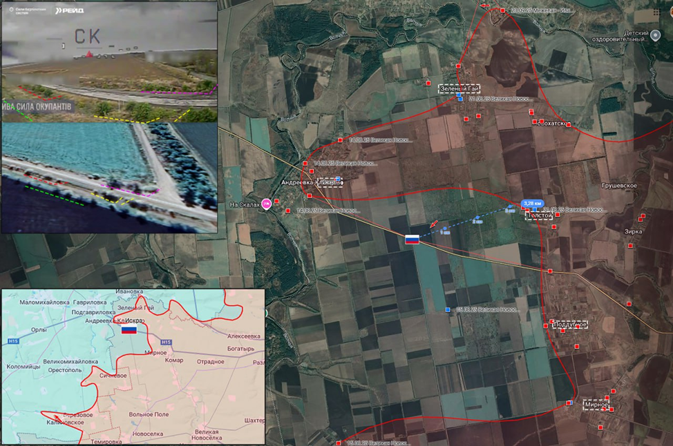03.10.25 Великая Новосёлка – Искра. Позиционные боевые действия в районе Великой Новосёлки. Передовая позиция ВС РФ на автотрассе между Поддубным и Искрой обстреляна ВСУ. ВС РФ продвинулись до 3,5 км и взяли под контроль территории южнее Искры.