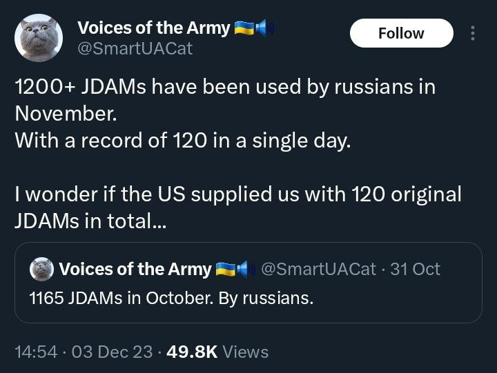 Поставки GLSDB переносятся на 2024 год https://www.reuters.com/world/europe/ukraines-new-long-range-rocket-delivery-us-pushed-next-year-2023-11-30/