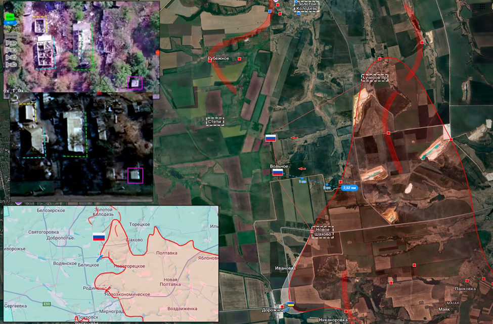 05.10.25 Доброполье - Вольное Позиционные боевые действия в районе Красноармейска. Передовая позиция ВС РФ в Вольном попала под обстрел с дрона ВСУ. ВС РФ продвинулись на 2,5 км на Добропольском выступе и заняли новые позиции в посёлке Вольное.