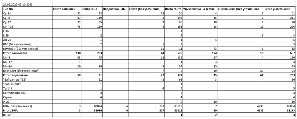 Потери ВВС ВСУ по брифингам МО РФ. Еженедельное обновление.