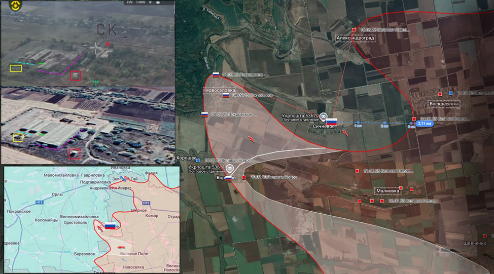 · Южнее Покровска/Красноармейска в Удачном отмечено новое небольшое продвижение ВС РФ