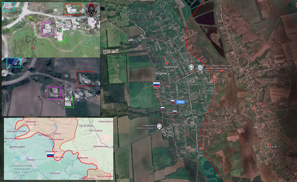 · К востоку от Лимана/Красного Лимана опубликовано видео флага России в западной части пгт Кировск/Заречное. По флагу отмечены новые позиции ВС РФ. (Небольшое продвижение).
