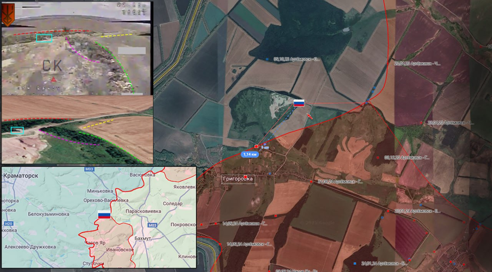 08.09.25 Артёмовск – Григоровка. Позиционные боевые действия в районе Артёмовска. Передовая позиция ВС РФ попала под обстрел ВСУ около Григоровки. ВС РФ расширили зону контроля севернее Григоровки на 1 км и заняли новую позицию на рубеже Григоровка - Орехово-Василевка.