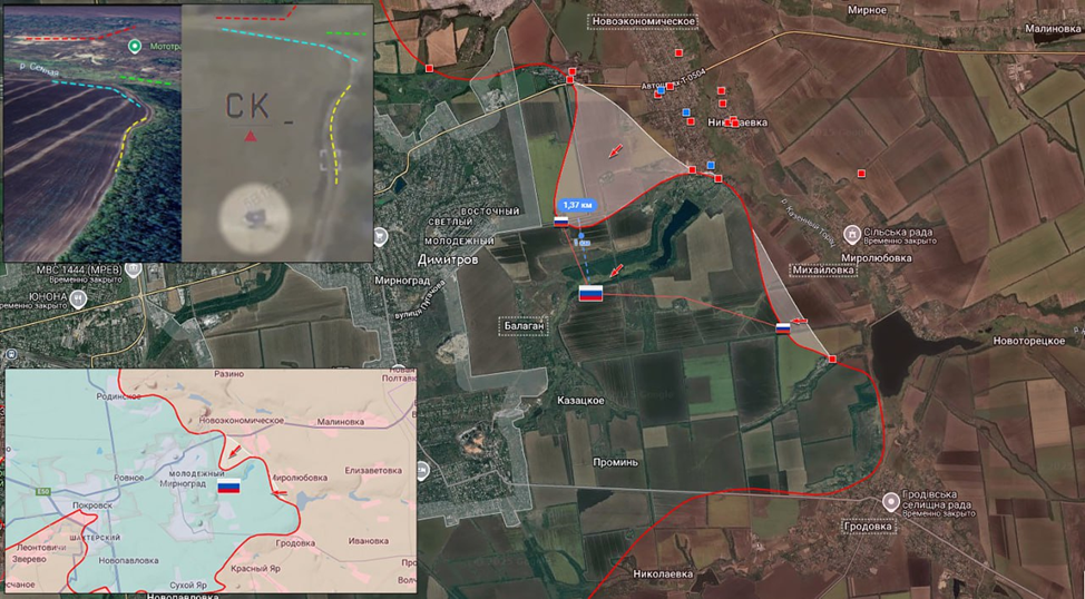 08.09.25 Красноармейск – Балаган. Активные боевые действия в районе Красноармейска. Атака ВС РФ мотострелковым подразделением в направлении населённого пункта Балаган под обстрелом ВСУ, Продвижение ВС РФ вдоль реки Сенная, расширение зоны контроля на восточном охвате Красноармейска до 1,5км.