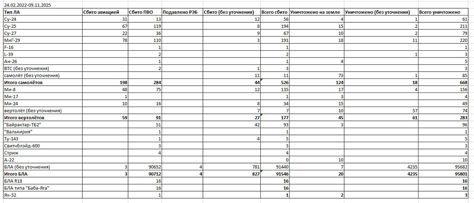 Потери ВВС ВСУ по брифингам МО РФ. Еженедельное обновление.