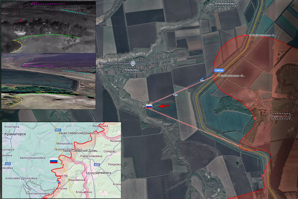 12.11.25 Часов Яр – Марково. Активные боевые действия в районе Артёмовска. Штурмовики ВС РФ продвинулись западнее канала Северский Донец-Донбасс более 2 км и вышли на новые позиции южнее деревни Марково. Огневой налёт со стороны ВСУ на передовые позиции ВС РФ в окрестностях Марково.