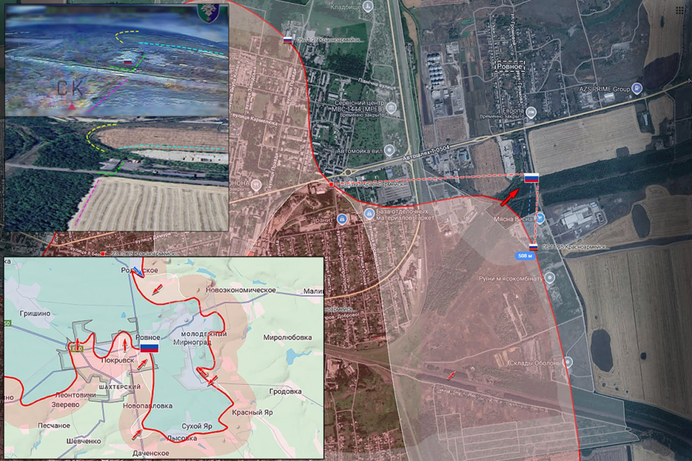 12.11.25 Красноармейск – Ровное. Активные боевые действия в районе Красноармейска. ВС РФ продвинулись на 500 метров в горловине Красноармейского мешка в направлении на Ровное и заняли новые позиции около бетонного завода. Продвижение штурмовиков ВС РФ под огнём ВСУ на восточных границах Красноармейска.