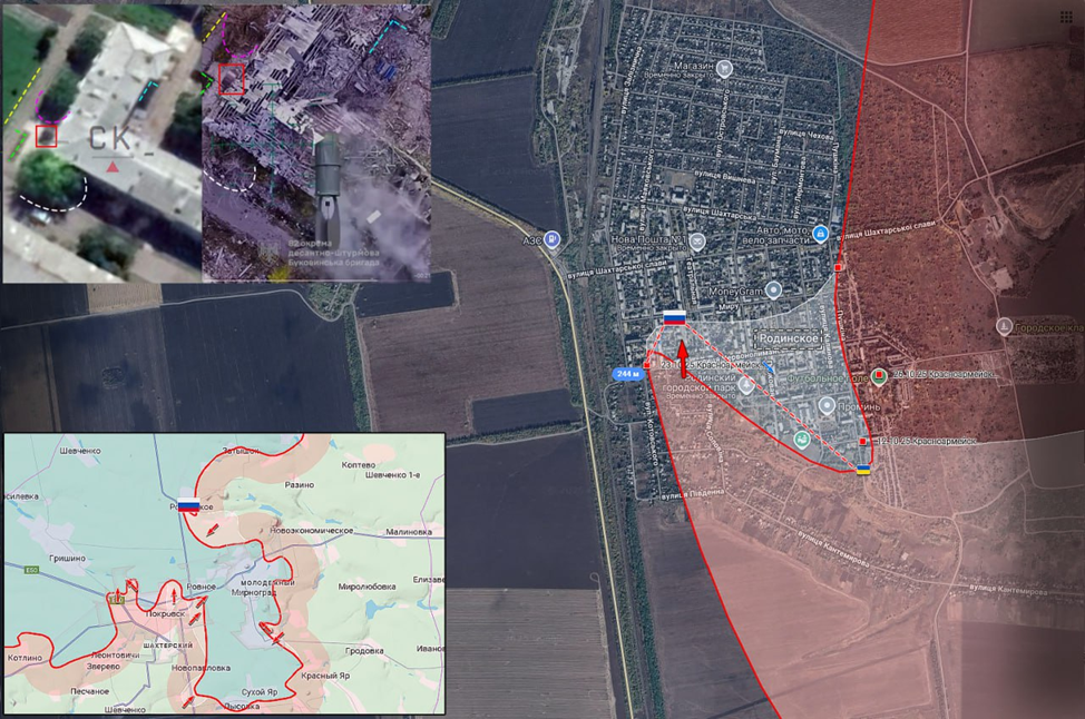 13.11.25 Красноармейск - Родинское Позиционные бои в районе Красноармейска. Обстрел с дрона позиции ВС РФ в многоквартирном доме в Родинском. Бои за контроль позиций в кварталах с многоэтажной застройкой в городе. Расширение зоны контроля ВС РФ около 200 метров