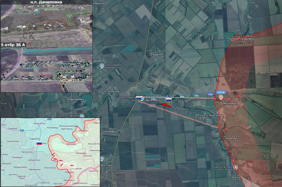 13.11.25 Покровское - Даниловка Последствия боевых действий в Днепропетровской зоне безопасности. Подразделения ВС РФ продвинулись на 5 км в долине реки Янчур и взяли под контроль населённый пункт Даниловка. В застройке развернуты флаги Российской Федерации. https://t.me/voin_dv/17667