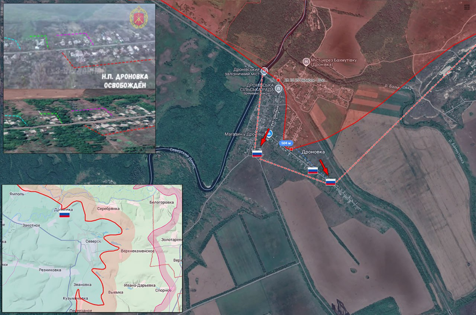 14.11.25 Северск – Дроновка. Последствия боевых действий в районе Северска. С боями под контроль ВС РФ перешел населённый пункт Дроновка. В жилой застройке подняты флаги Российской Федерации. Увеличение зоны контроля ВС РФ в населённом пункте около 500 метров. https://t.me/shock3OA/3356