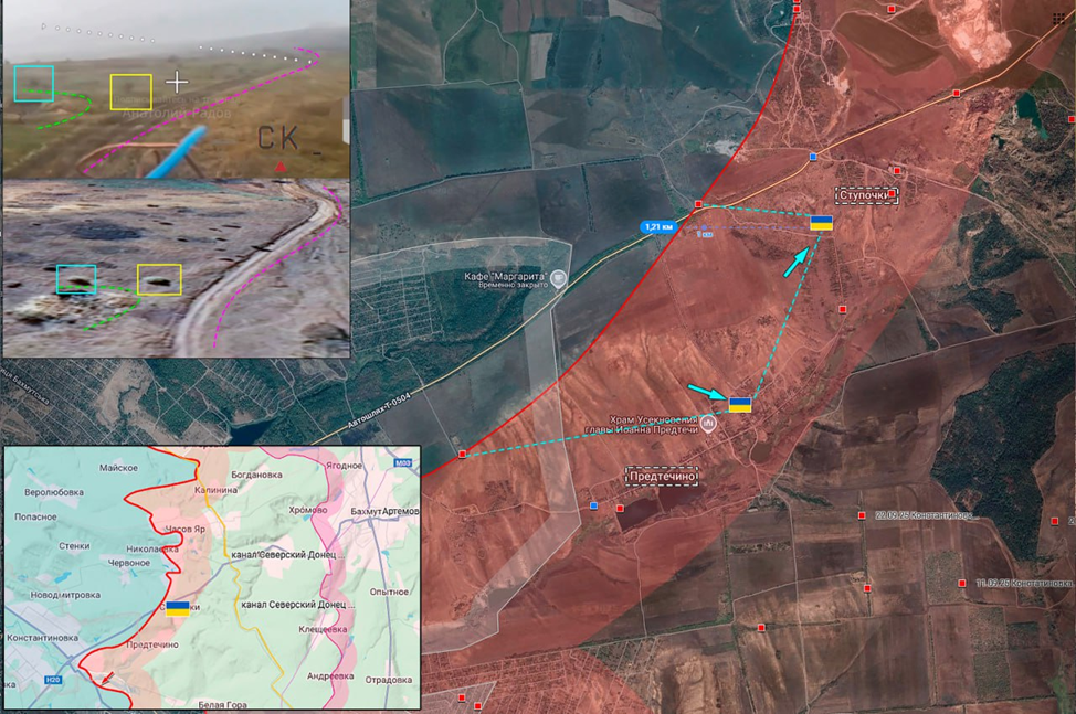 09.11.25 Часов Яр - Ступочки – Предтечино. Активные боевые действия в районе Артёмовска. Атака ВСУ бронеколонной в направлении населённых пунктов Ступочки и Предтечино. Обстрел штурмовой техники со стороны ВС РФ на глазах изумлённой коровы с телёнком. Увеличение зоны контроля ВСУ около 1 км южнее Часов Яра. https://t.me/motopatriot78/44401