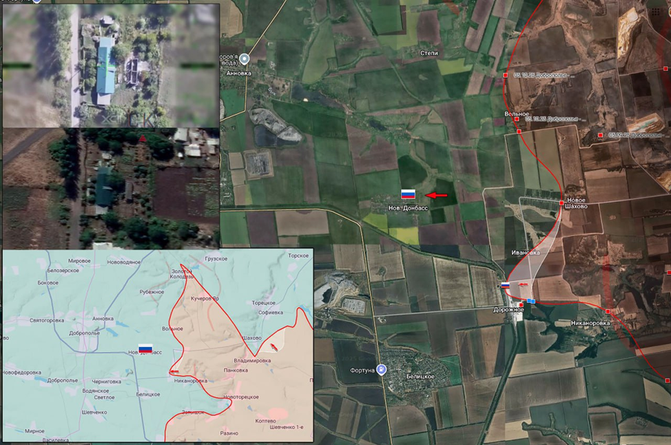 01.09.25. Добропольский прорыв. События второй половины августа - начала сентября. Рубеж максимального продвижения малых пехотных групп во время прорыва ВС РФ в направлении Доброполья. Позиция ВС РФ под огнём ВСУ в деревне Новый Донбасс. Видео архивное.