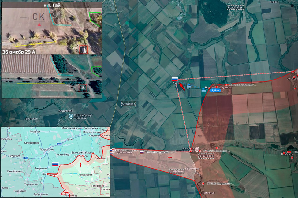 17.11.25 Покровское – Гай. Последствия боевых действий в Днепропетровской зоне безопасности. Штурмовики группы войск "Восток" продвинулись на 2,5 км в Днепропетровской области и достигли населённого пункта Гай. В жилой застройке подняты флаги Российской Федерации. https://t.me/voin_dv/17715