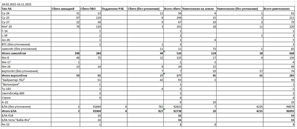 Уничтоженная военная техника ВСУ за 2025-11-16