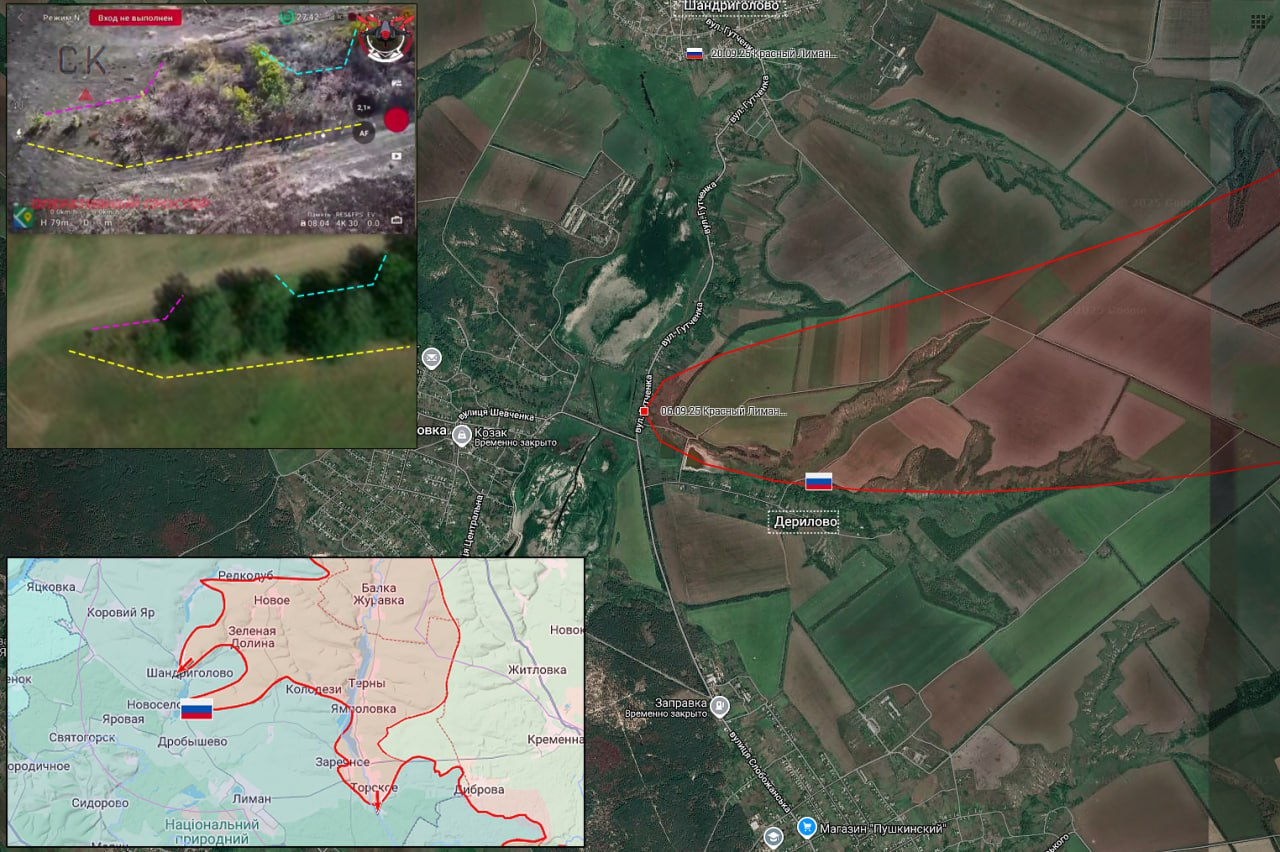 22.09.25 Красный Лиман - Дерилово Активные боевые действия в районе Красного Лимана. Штурмовики ВС РФ зачищают блиндаж ВСУ в опорном пункте на северных подступах к Дерилово и берут в плен военнослужащего ВСУ. Уточнение линии боевого соприкосновения в окрестностях Шандриголово. https://t.me/operationall_space/6582