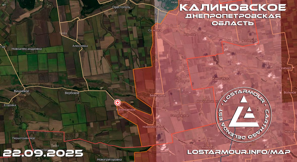 22.09.25 Покровское - Калиновское Последствия боевых действий в Днепропетровской области. ВС РФ продвинулись в Днепропетровской области более 2,5 км и овладели населённым пунктом Калиновское. На территории посёлка штурмовиками ВС РФ подняты флаги Российской Федерации. https://t.me/voin_dv/16971