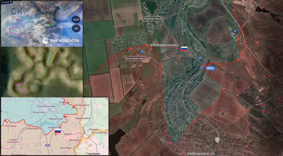 23.08.25 Константиновка - Катериновка Активные боевые действия в районе Горловки. Атака ВС РФ пехотным подразделениям к востоку от Катериновки. Штурмовая группа зачищает опорный пункт ВСУ на берегах реки Кривой Торец и занимает новые позиции. Расширение зоны контроля ВС РФ до 1 км. https://t.me/rian_ru/312076
