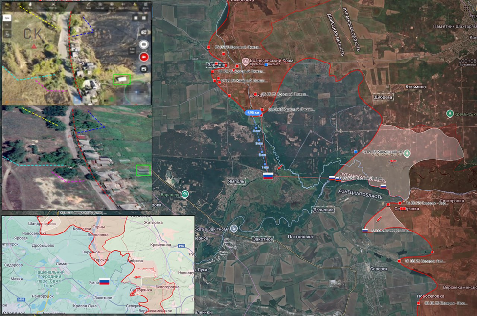 25.09.25 Красный Лиман - Ямполь Позиционные боевые действия в районе Красного Лимана. ВС РФ продвинулись около 5 км в Серебрянском лесу и вышли к населённому пункту Ямполь. Штурмовыми подразделениями занята новая позиция в восточной части населённого пункта. Передовая позиция в жилой застройке попала под обстрел ВСУ.