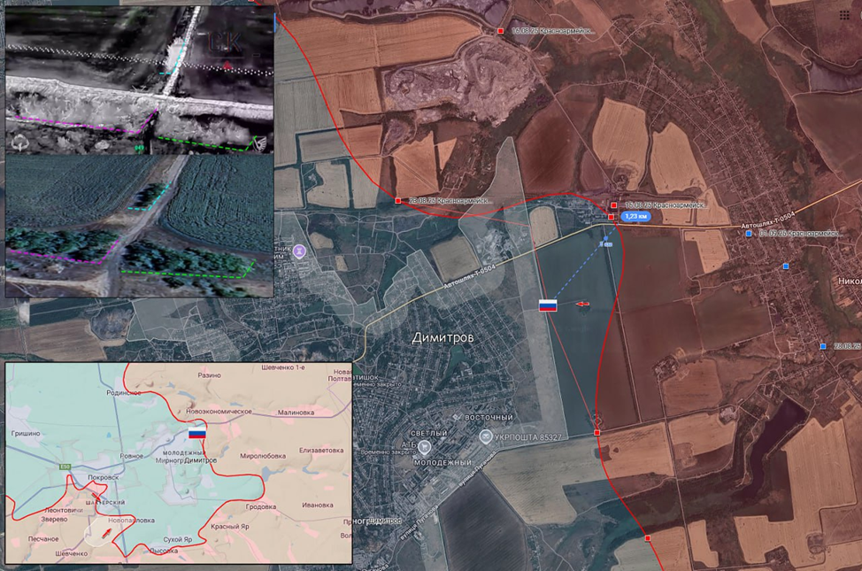 26.09,25 Красноармейск – Димитров. Боевые действия в районе Красноармейска. Военнослужащий ВС РФ попал под обстрел ВСУ на ближних подступах к Димитрову. ВС РФ расширили зону контроля и продвинулись более 1 км к Димитрову с востока.