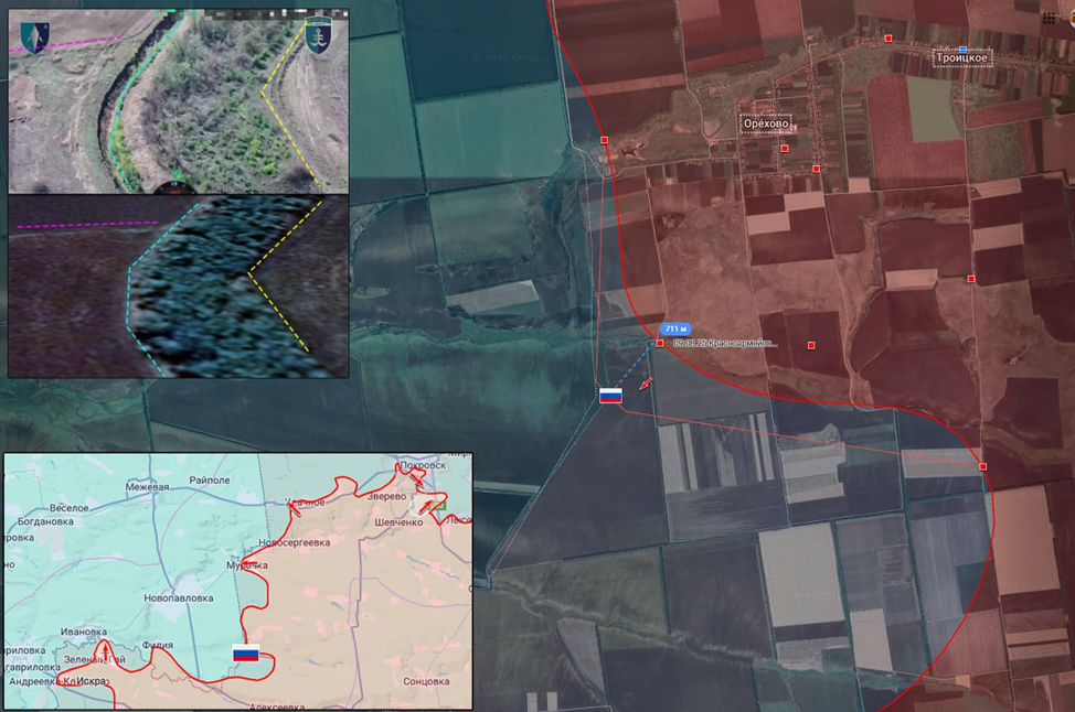 25.09.25 Красноармейск – Орехово. Позиционные боевые действия в районе Красноармейска. Передовая позиция ВС РФ на границе с Днепропетровской областью попала под обстрел ВСУ. ВС РФ расширили зону контроля на южном охвате Красноармейска около 700 метров