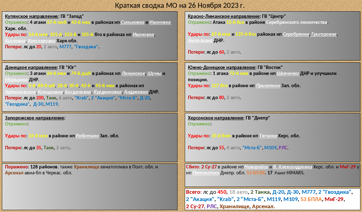 Война на Украине - Сводка за 26.11.2023