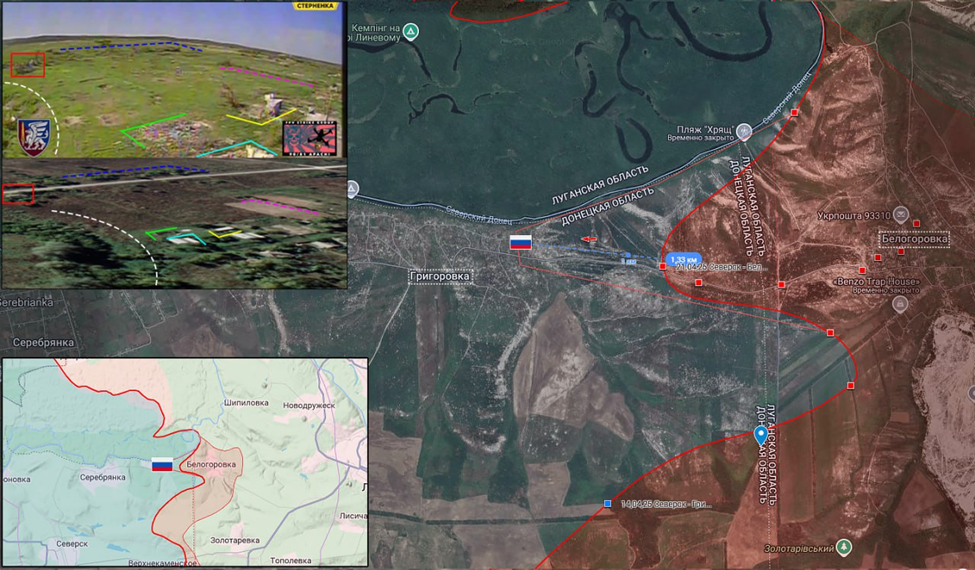 28,04,25 Северск - Григоровка Позиционные боевые действия в районе Северска. Передовая позиция ВС РФ в Григоровке попала под обстрел ВСУ. Штурмовые подразделения ВС РФ заняли новые позиции на восточной окраине Григоровки продвинувшись более 1 км вдоль Северского Донца по направлению к Северску.