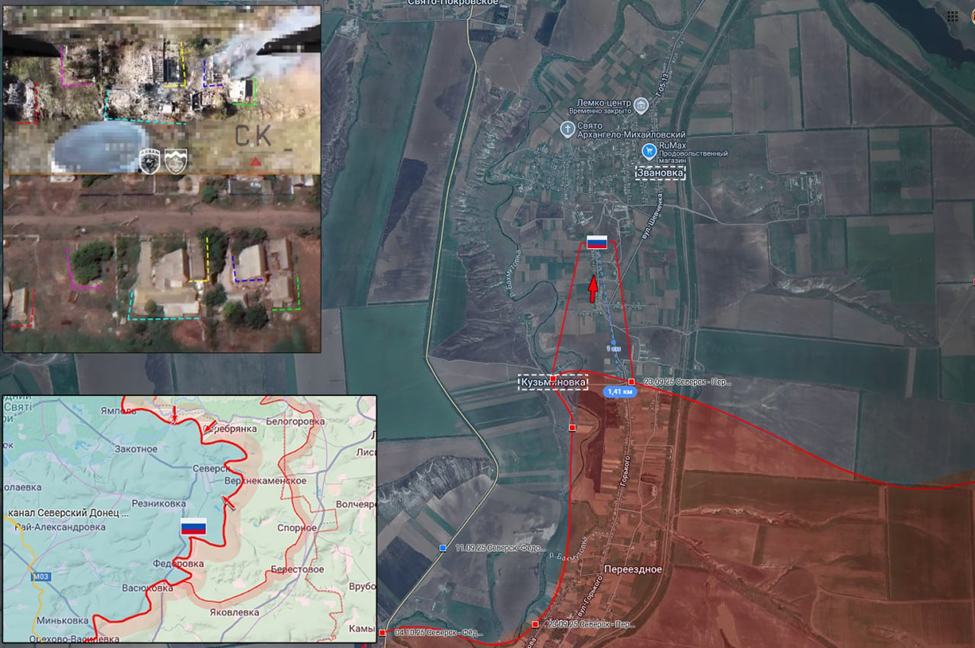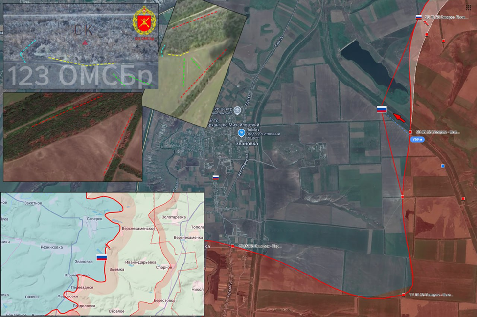 29.10.25 Северск - Звановка Позиционные боевые действия в районе Северска. ВС РФ продвинулись к Северску с южного направления на 1,5 км и достигли новых позиций в жилой застройке посёлка Звановка. Передовая позиция в южной части посёлка попала под обстрел ВСУ.