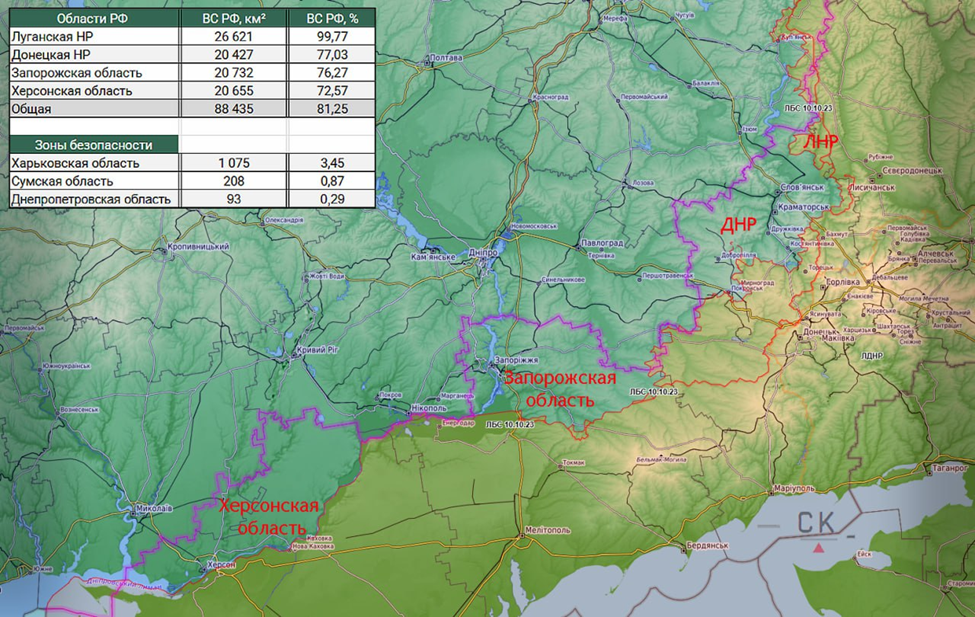 30.09.25 Процент контролируемых территорий Процентное соотношение находящийся под контролем ВС РФ территорий областей и республик в зоне проведения Специальной Военной Операции к 30 сентября 2025.