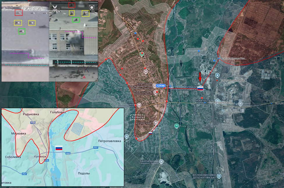 30.10.25 Купянск - Левый берег Позиционные боевые действия в Купянске. Позиция ВС РФ в производственном помещении Купянского молочно-консервного завода под огнём ВСУ. ВС РФ расширили зону контроля в левобережной части Купянска и заняли новые позиции в промзоне города. Увеличение зоны контроля более 1 км.