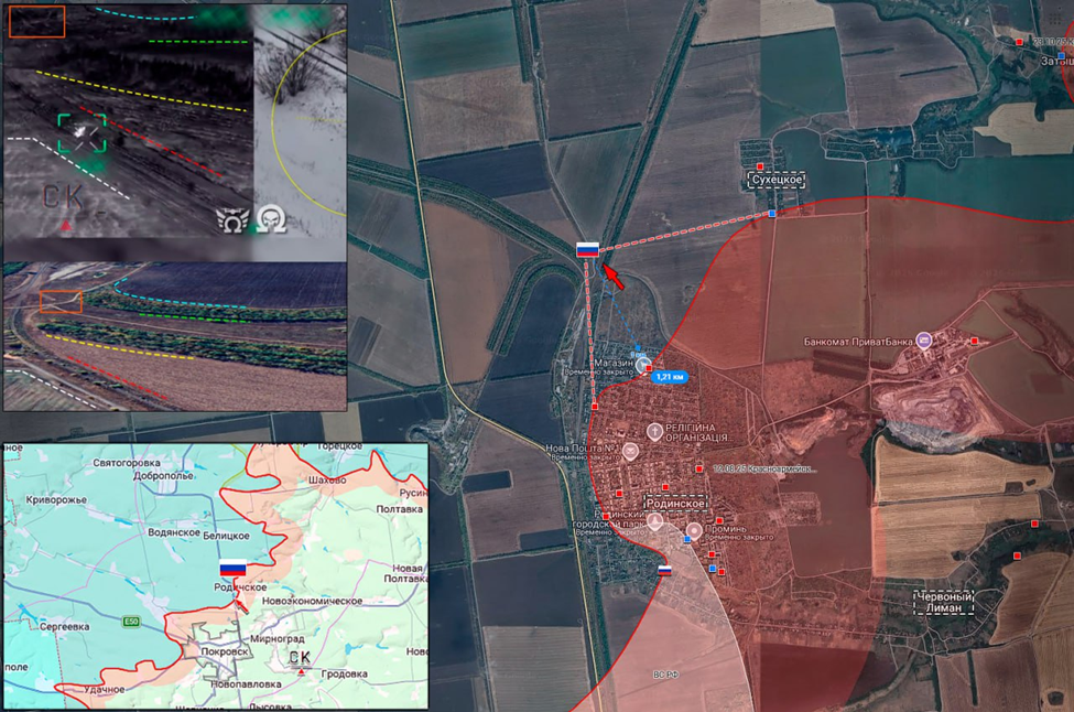 01.02.26 Красноармейск - Родинское Позиционные боевые действия в районе Красноармейска. Передовая позиция ВС РФ около Родинского попала под обстрел ВСУ. ВС РФ продвинулись около 1 км и заняли новые позиции севернее города у железнодорожной развязки к шахтам.