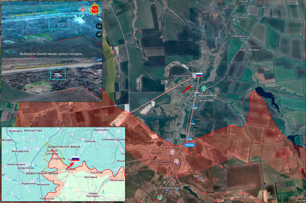 03.02.26 Доброполье – Торецкое. Активные боевые действия в районе Красноармейска. Атака ВС РФ пехотным подразделением. Штурмовики ВС РФ занимают новые позиции в жилой застройке Торецкого. Продвижение ВС РФ около 4 км севернее Красноармейска. https://t.me/mod_russia/60848