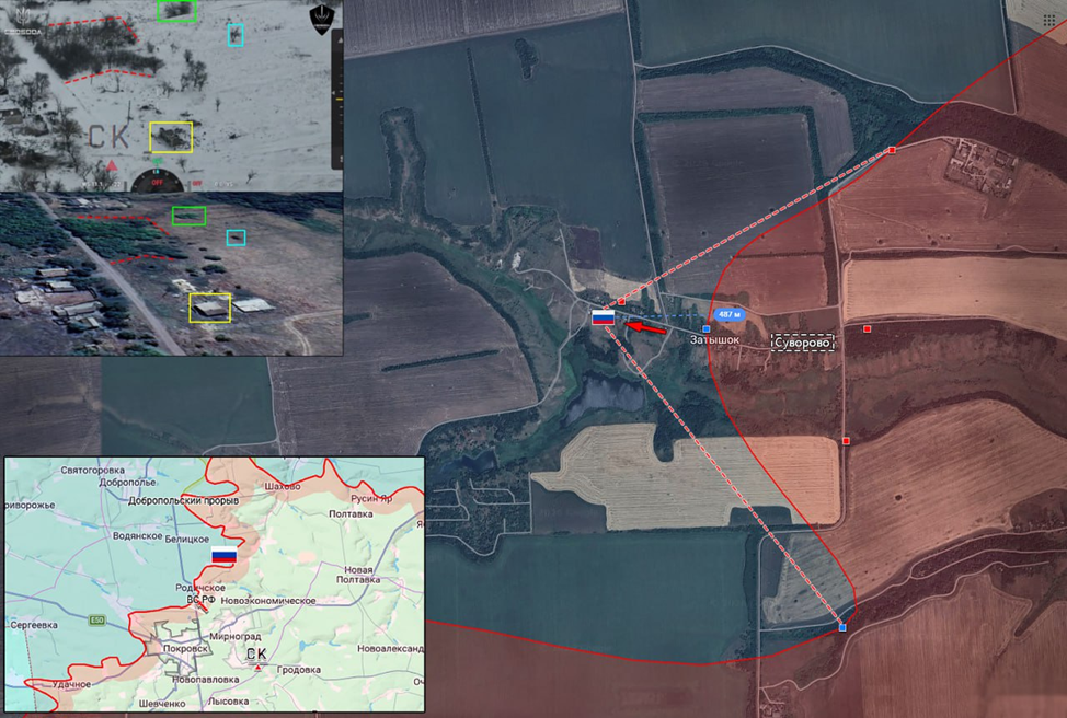 03.02.26 Красноармейск - Суворово(Затышок). Позиционные боевые действия в районе Красноармейска. ВС РФ продвинулись в Суворово до 500 метров и вышли на западную окраину жилой застройки. Передовая позиция под огнём ВСУ.