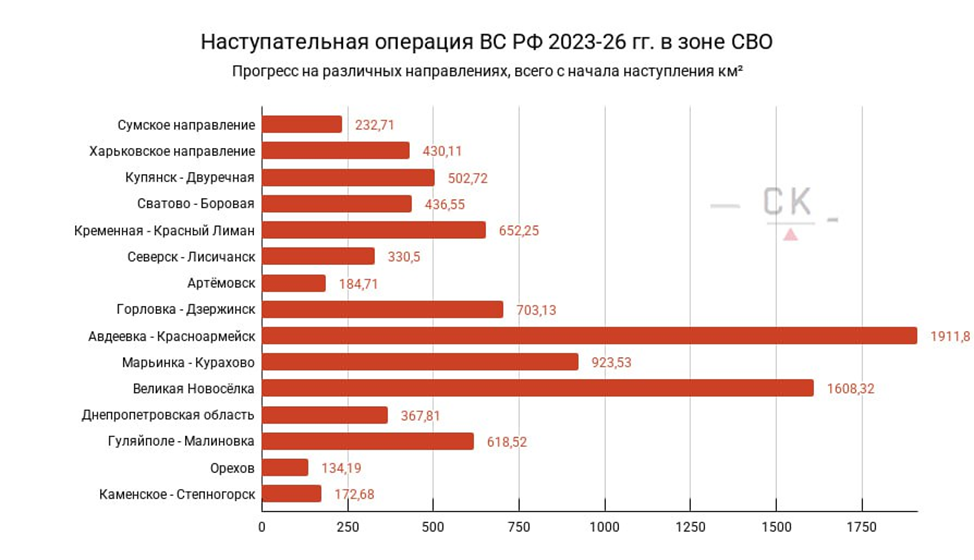 03.02.26 Направления боевых действий. Инфографика интенсивности наступления ВС РФ в зоне СВО на различных направлениях к февралю 2026.