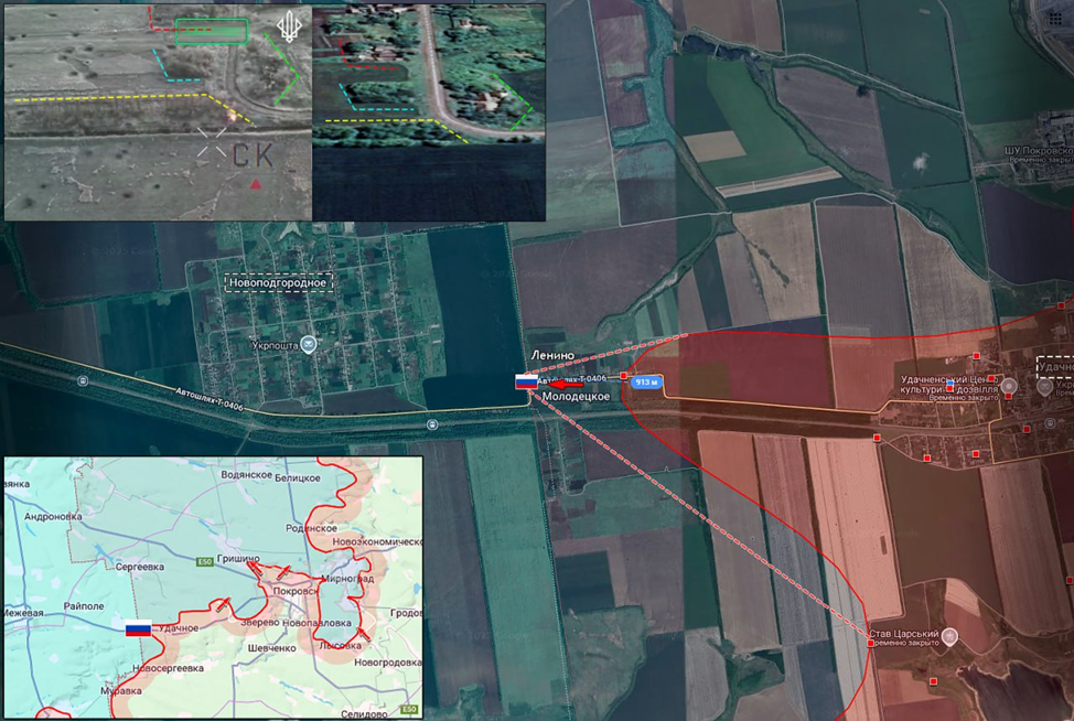 03.12.25 Красноармейск - Ленино(Молодецкое). Позиционные боевые действия в районе Красноармейска. Передовая позиция ВС РФ в Ленино обстреляна ВСУ. ВС РФ продвинулись в населённом пункте по направлении к границе с Днепропетровской областью и увеличили зону контроля на 900 метров.