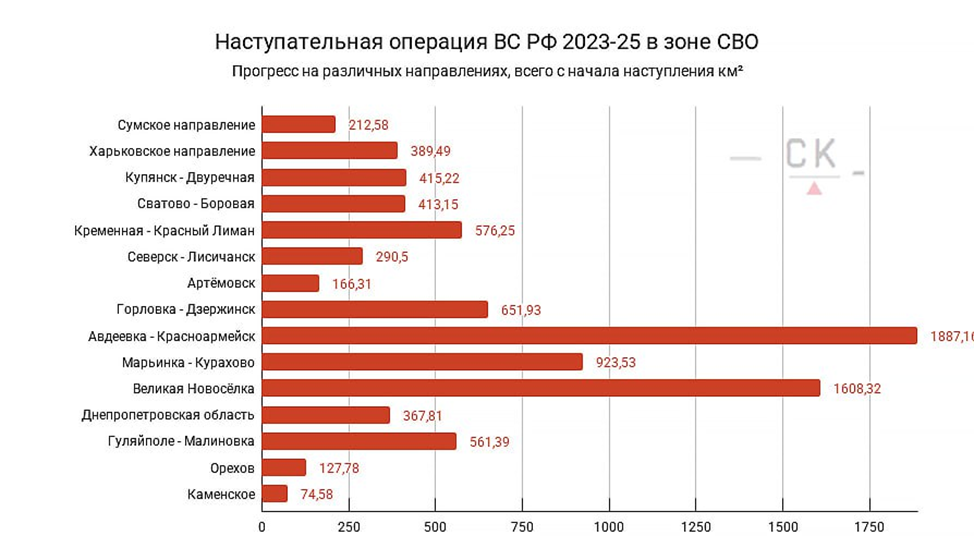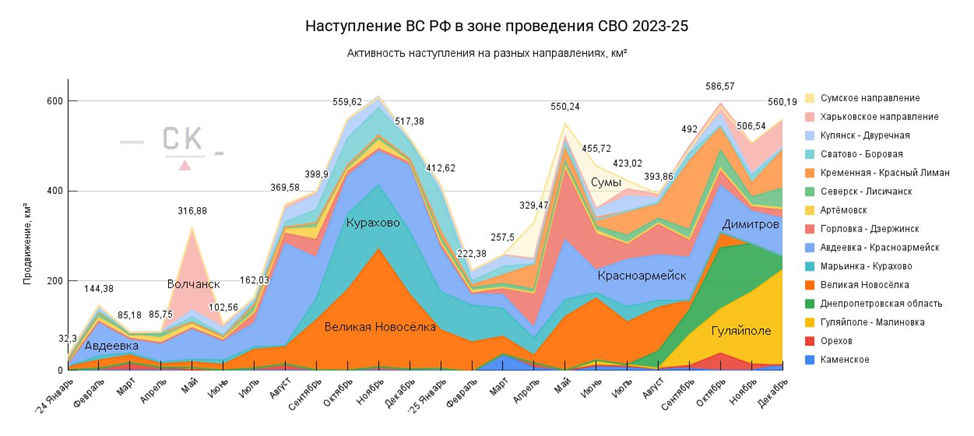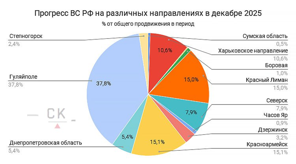 05.01.26 Направления боевых действий. Инфографика интенсивности наступления ВС РФ в зоне СВО на различных направлениях к январю 2026.